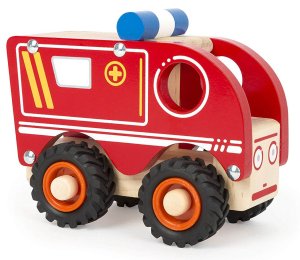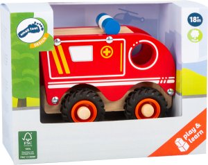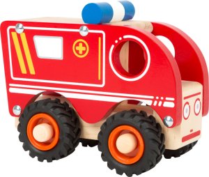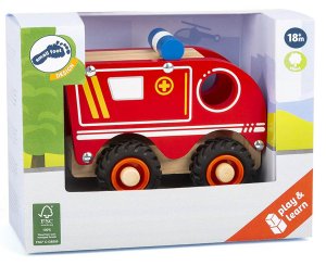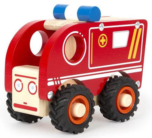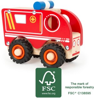Drevené autíčko je vyrobené z tvrdého masívneho dreva. Vozidlo ambulancie má gumové kolieska.