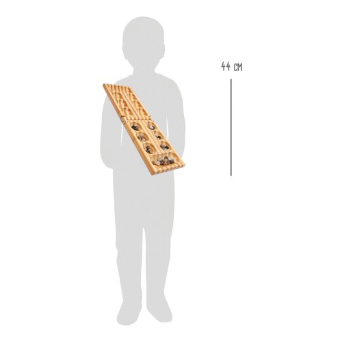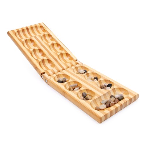 Táto kvalitná drevená krabička s jamkami vo vnútri obsahuje starodávnu a nadčasovo napínavú logickú hru „Kalaha“. Cieľom hry je získať čo najviac z 48 prírodných kameňov! Hlavné vlastnosti: praktické balenie pre použitie na cestách vyrobené z bambusového dreva obsahuje 48 prírodných kameňov. Pravidlá hry: Jednou z najznámejších mankalových hier je Kalaha. V jej úvode rovnomerne rozdelíte všetky kamienky do šestice menších jamiek a vyžrebujete si začínajúceho hráča. Veľká jamka po pravici každého z hráčov je jeho pokladnicou, do ktorej sa bude snažiť postupne premiestniť čo najväčší počet kameňov. To sa deje tak, že ťahajúci hráč vyberie obsah niektorej jamky na svojej strane hracieho poľa a po jednom kamienku, proti smeru každý rozdeľručičiek, hrsť do seba idúcich jamiek. Ako jamka sa v tej chvíli počíta aj jeho pokladnica, nie však súperova. Pokiaľ posledný kamienok v aktuálnom ťahu vychádza na hráčovu pokladnicu, získava práve hrajúci ťah navyše. Ak pripadne posledný kamienok na prázdnu jamku hracieho poľa ďalej rozdávajúcemu, jej premiestniť do svojej pokladnice, navyše ale môže získať aj kamene z jamky na protiľahlej, súperovej strane. Hneď ako v jamkách na jednej, či druhej strane nezostane žiadny kameň, hra končí. Hráč, ktorému po skončení ostali v jamkách na jeho strane nejaké kamene, je možné pripočítať k obsahu svojej pokladnice.