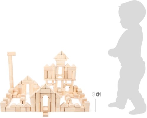 Tehlu po tehle, kocku po kocke. Táto obsiahla sada prírodných drevených kociek je ako stvorená pre malého staviteľa. Nájdete tu širokú škálu rôzne tvarovaných stavebných prvkov uložených v plátennom vrecúšku. Hlavné vlastnosti: obsahuje 200 blokov z neošetreného, hladkého dreva dodáva sa vrátane praktického pláteného vrecúška všestranná hračka pomáha rozvíjať priestorovú predstavivosť