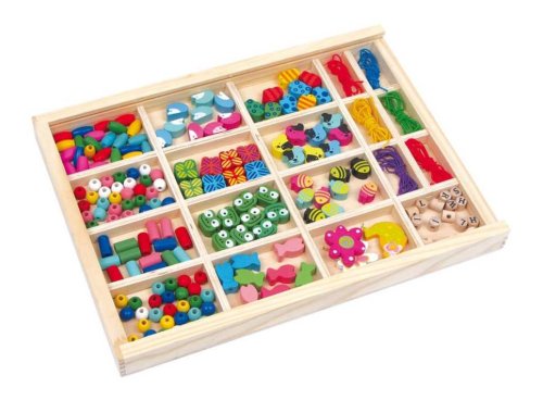 Zábava s navliekaním teraz môže začať. Tento zberný box má 19 priehradiek s pestrofarebnými drevenými korálkami. Celkom 157 navliekacích korálikov, 6 navliekacích stuh, 3 prívesky v drevenej krabičke. Deti si vytvárajú svoje vlastné náhrdelníky, náramky alebo prívesky. Priehľadné posuvné veko drží všetko na svojom mieste a umožňuje pohľad na obsah. Ideálne tiež, keď ste na cestách. Hlavné vlastnosti: ideálny pre kreatívne navrhovanie vlastných šperkov veľký výber navliekacích korálikov trénuje trpezlivosť a jemnú motoriku rozvíja kreativitu vhodné na cesty