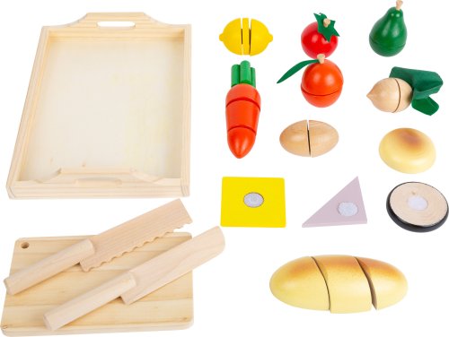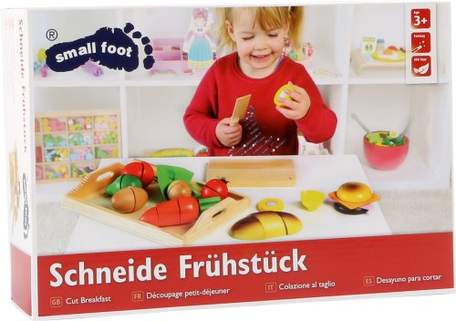 Chutne vyzerajúce raňajky z dreva. S priloženými nožmi sa raňajky dajú rozdeliť na jednotlivé súčasti a znovu zostaviť pomocou suchých zipsov. Hlavné vlastnosti: rozvíja sociálne zručnosti, obratnosť, predstavivosť a kreativitu ideálny tvar pre malé detské ruky