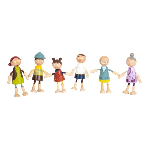 Oživte svoj domček pre bábiky s touto rozkošnou rodinkou! Postavičky sú vyrobené z kvalitného dreva a majú ohybné časti z drôtikov opletených textílií, ktoré im umožňujú stáť, sedieť a ľahko meniť pozície. V sade nájdete mamičku, otecka, babičku, deduška, brata a sestru - všetky dokonale prispôsobené pre detské ruky. Vďaka svojej odolnej konštrukcii sú postavičky ideálne pre dlhé hodiny plné zábavnej hry. Hlavné vlastnosti: 6 figúrokodolné a pohyblivéprecízne prepracované detailyideálne pre nápaditú hru