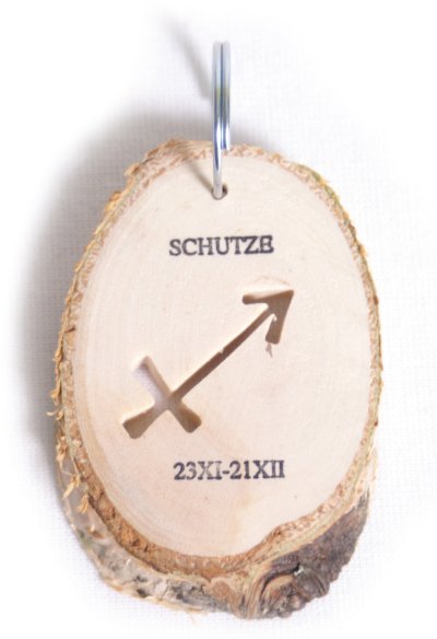 Prívesok z prírodného dreva, vhodný napr. ako kľúčenka. Hlavné vlastnosti: znamenie - Str elec.vhodn ý na kľúče