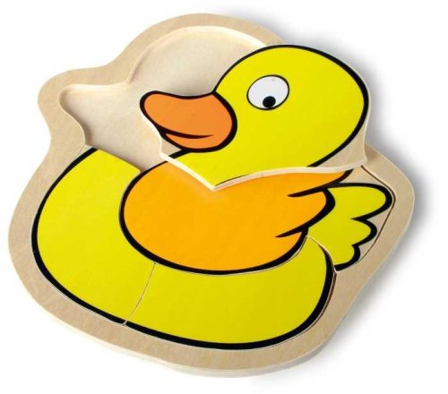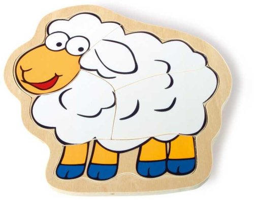 Balenie obsahuje 4 odlišné puzzle motívy (4 dieliky kačička, 5 dielikov kravička, ovečka a kohút). Drevená podložka uľahčuje prenášanie a rámček zabezpečuje, aby drevené dieliky držali na svojom mieste. Balené v drevenej krabičke s priehľadným vekom.