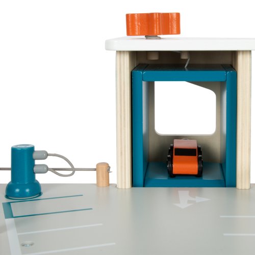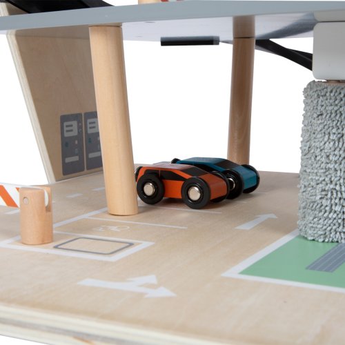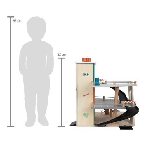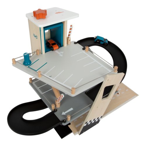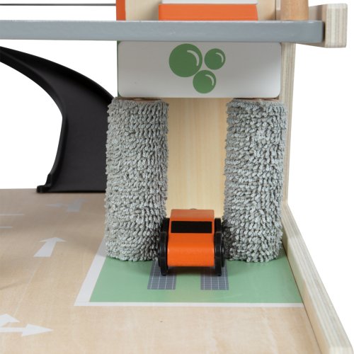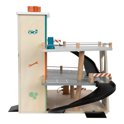 Video je iba ilustračné, zobrazuje príbuzný produkt. Parkujte, tankujte, umývajte alebo opravujte, a to všetko s jednou garážou! Ponúka tri bohato vybavené podlažia prepojené atraktívnym funkčným výťahom a zábavnými, na seba plynule nadväzujúcimi rampami. Jej súčasťou je dvojica autíčok, ktoré môžu pri fantastických hrách využiť pumpy, nabíjacie stanice, zdvíhacie rampy alebo umývačky s realistickými kefami. Každá z úrovní je navyše vybavená mechanickou závorou pre dokonale pútavé zážitky. Poschodia sú opatrené gumovým hradením, ktoré dodávajú jazde autíčok na dynamike a bránia ich vypadnutiu. Garáž je podrobne zdobená mnohými farebnými ikonami a značením, ktoré do hier vnesie aj poučenie. Je vyrobená zo silnej, pevnej a odolnej drevenej preglejky s doplnkami z masívneho dreva a nezávadného plastu. Výrobok vyžaduje montáž, dodávané s obrázkovým návodom na zostavenie. Hlavné vlastnosti: garáž a 2 autíčka3 podlažia prepojené funkčným výťahom a 2 rampamipumpa, nabíjacia stanica, zdvíhacia rampa, umývačka a 3 závorykompatibilné s vláčikodráhami a súvisiacim príslušenstvom iných výrobcovbohato zdobené jednoduchými ikonami a značenímpevné a odolné drevené prevedenie