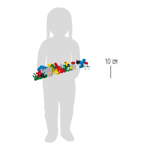 Kto dokáže zoradiť drevené zvieratká do správneho poradia? Drevené diely v tvare zvierat sú výzvou pre všetkých nadšencov skladačiek. Čísla 1-26 na jednej strane a abeceda na druhej strane pomôžu pri skladaní. Hlavné vlastnosti: obsahuje 26 zvieratiek čísla na jednej strane a na druhej abeceda