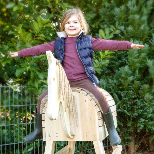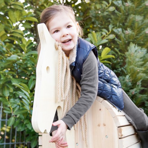 Malí aj väčší jazdci sa môžu hravou formou zoznámiť so základmi starostlivosti aj jazdectva. Hriva a chvost zo sisalu nabáda deti k úprave, zaplietaniu a skrášľovaniu. Vďaka zabudovanému stupienku bude nasadanie hračka! Šikmé koníkove nohy sľubujú väčšiu stabilitu a bezpečnosť. V bruchu má kôň veľký úložný priestor! Ako stvorený na uloženie kefy na hrebelcovanie či ohlávky. Ideálne na záhradu alebo do detskej izby! Produkt je neošetrený - je možné natrieť konzervačným lakom podľa priania a potrieb majiteľa. Rozmer konského chrbta bol navrhnutý pre veľkosť sedla, ktorý sa predáva samostatne. Hlavné vlastnosti: súčasťou balenia ohlávkasisalový chvost a hrivanonešetrené, odolné drevoúložný priestor v bruchuzoznamovaní s povinnosťami starostlivosti zábavnou formou
