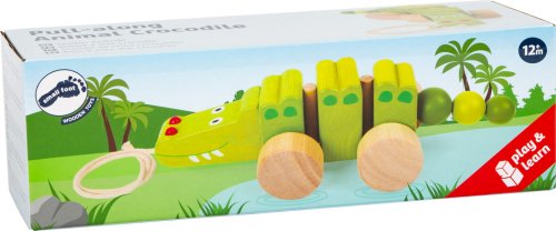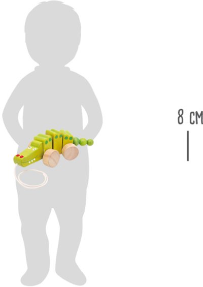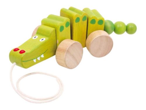 Tento smiešny krokodíl, vyrobený z vysoko kvalitného zeleno glazovaného a neošetrovaného bukového dreva, sa za deťmi pri zatiahnutí za povrázok veselo vrtí. Vďaka šnúre môžu najmenší za sebou tohto roztomilého ťahacieho krokodíla ľahko ťahať a chodiť spolu na prechádzky. Hlavné vlastnosti: podporuje rovnováhu a koordináciu pohybov veselé farebné prevedenie aj dizajn
