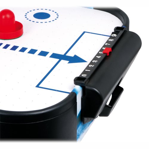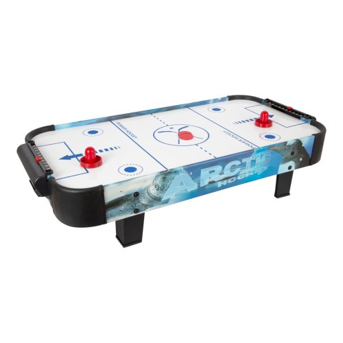 Populárny vzdušný hokej preverí postreh a obratnosť detí. Vďaka vzduchu vháňanému zospodu vstavaným ventilátorom môže puk hladko, ale hlavne bleskurýchlo kĺzať po hracej ploche. Hráči majú k dispozícii kužeľové rakety, ktorými sa snažia streliť puk do súperovej bránky. Rakety sú na spodných stranách opatrené plsťou pre ľahký a bezhlučný pohyb. Bránka každého z hráčov je vybavená jednoduchým číselníkom na zaznamenávanie priebehu zápasu. Hru je možné vďaka jej veľkosti ľahko upratať, prenášať, alebo aj vziať na cesty. Napájanie je zaistené adaptérom so štandardnou eurozástrčkou pre 220–240 V. Výrobok vyžaduje montáž, dodávané s obrázkovým návodom na zostavenie. Hlavné vlastnosti: rýchla, akčná hra pre 2 hráčovhrací stôl s napájacím adaptérom, 2 pálky a 2 pukyčíselníky pre záznam skóre