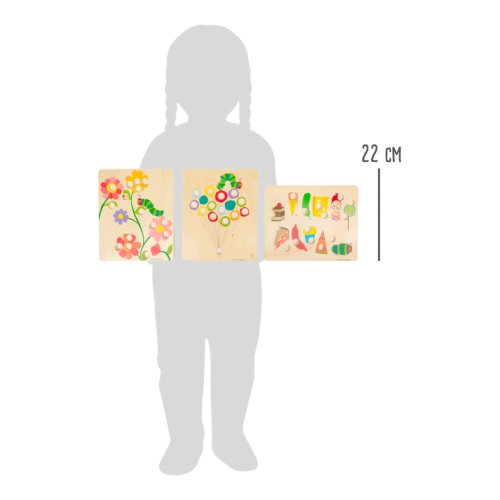 Small foot Farebná hra Caterpillar - kam patrí ktorá farba? Táto hra obsahuje 95 dielikov, ktoré musíte farebne priradiť k hernej doske. Tri herné dosky s dohromady šiestimi obrázkami. Vzdelávacia hra, ktorá precvičuje poznávanie farieb a jemnú motoriku. Herné dosky z pevného dreva majú veľmi kvalitnú potlač, môžete ich uložiť do textilného vrecka, sú ideálne na cesty. Hlavné vlastnosti: obsahuje 95 dielikov precvičuje poznávanie farieb ideálne na cesty