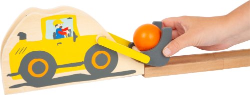 Guľôčková zábava pre najmenších! Súčiastky tejto guličkovej dráhy je možné jednoducho zložiť, veľká farebná gulička tak môže začať svoje preteky naozaj rýchlo! Deti, ktoré ešte len začínajú s motorickými aktivitami si určite užijú túto hru plnú fantázie. S prvkami staveniska sa deti zábavnou formou naučia o priečine a následku, taktiež si potrénujú postreh pri sledovaní pohybujúcich sa predmetov. Dráha je z prírodného dreva s farebnými prvkami staveniska. Jednoduchý dizajn, ktorý nezahltí detské zmysly, súčiastky sú dosť veľké, takže ich deti nemôžu jednoducho prehltnúť. Súčiastky sú pre deti jednoducho uchopiteľné. Vďaka modulárnemu dizajnu môžu deti postaviť mnoho rôznych typov dráh, nič neobmedzuje ich predstavivosť. Je tiež kompatibilný s Guličkovou dráhou detské ihrisko LE11379. Staršie deti môžu na dráhu namiesto guličiek pustiť autíčka. Hlavné vlastnosti 10 dielna dráha5 stavebných prvkov3 guličky1 bager1 sklápačKompatibilný s LE11379