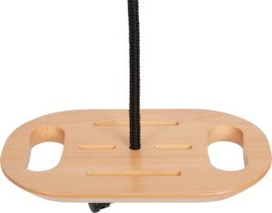 Zábava pri hojdaní v stoji aj v sede. Táto hojdačka je absolútnym pútačom doma aj na záhrade. Je vyrobená z robustného masívneho dreva v kombinácii s čiernymi lanami. Možno ju používať v sede, kde sa deti môžu držať madiel, ale aj v stoji. Vďaka drážkam na povrchu sedadla je táto hojdačka protišmyková a bezpečná. Robustné lano je výškovo nastaviteľné. Kovový krúžok umožňuje hojdačku rýchlo zavesiť aj zložiť. Unesie až 100 kg hmotnosti a je teda vhodná aj pre dospelých. Skvelá hojdačka pre vnútorné aj vonkajšie priestory, ktorá trénuje ovládanie tela, silu a obratnosť. Kto sa dokáže rozhojdať najviac? Hlavné vlastnosti: nastaviteľná lanáz materiálu odolného voči poveternostným vplyvom trénuje ovládanie tela, silu a rovnováhu zábava vhodná pre hranie doma aj vonkunosnosť: 100 kg