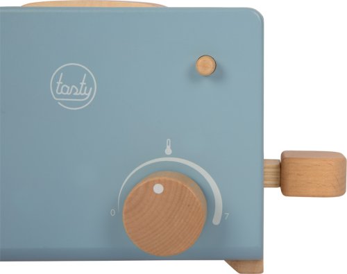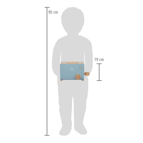 S týmto hriankovačom a jeho príslušenstvom budú každé raňajky pripravené v detskej kuchynke hitom! Má vyskakovaciu funkciu a jemný dizajn v dymovo modrej a bielej, hračka má tiež mnoho prírodného dreva. Medzi bohatým príslušenstvom nájdete plátky toastového chleba, nôž, maslo, marmeládu, čo pomôže pri realistickej hre! Hriankovač má otočné a pohyblivé tlačidlá, páč ku.Plátky toastu do hriankovača zasuniete pomocou veľkej páčky na boku, rovnako tak ich aj vysuniete. Otočným klikajúcim tlačidlom môžu deti nastaviť teplotu. Raňajková doštička môžete vďaka otvoru zavesiť, zaberie tak pri skladovaní menej miesta. Táto sada má farebný dizajn kompatibilný s ďalšími produktmi radu Tasty od Small Foot, napríklad Drevenou kuchynkou LE12216. Hlavné vlastnosti: drevený hriankovač s vyskakovacou funkciou bohaté príslušenstvo – plátky toastu, nôž, doska, maslo, marmeláda otočné klikajúce tlačidlo do výkroja dosky sa perfektne zmestí marmeláda