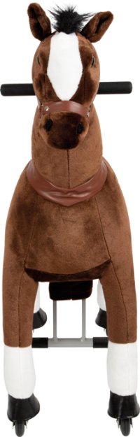 Kto sa chce prejsť? Tento hnedý plyšový kôň je vhodný do interiéru aj exteriéru a poskytuje extra veľkú radosť z jazdy. S funkciou riadenia je ideálnym spoločníkom pre rýchle vychádzky. Výška sedadla je 67 cm. Deti si na koni precvičia rovnováhu, koordináciu a obratnosť. Tento jazdecký kôň pripravuje deti zábavnou formou na jazdu na skutočnom koni. Koňa môžu mladí priaznivci uviesť do pohybu pomocou nožného pedála a potom ho pomocou bočných rukovätí riadiť požadovaným smerom. Odnímateľné sedlo a opraty spolu s plyšovou hrivou a chvostom poskytujú realistický scenár pre predstavivú hru. Vonkajšiu plyšovú časť je možné sňať pomocou zipsu a vyprať. Hlavné vlastnosti: potiahnuté mäkkým plyšom podporuje pohybovú aktivitu, rovnováhu a koordináciu výška sedu 67 cm nosnosť do 50 kg