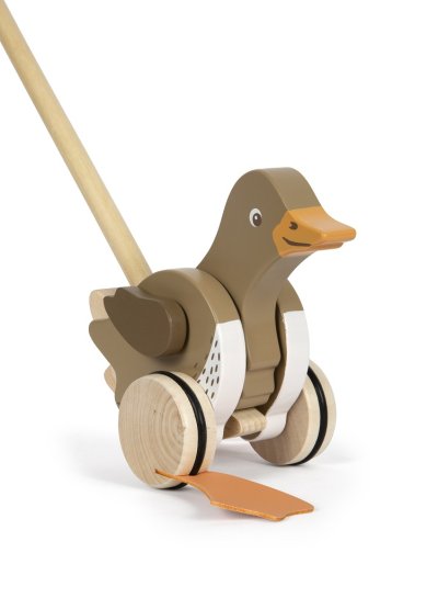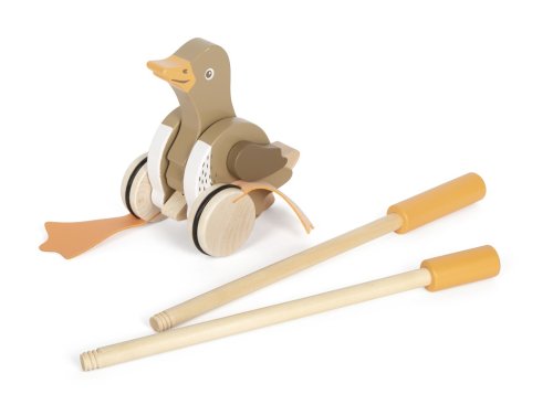 Predstavujeme Vám drevenú ťahaciu kačičku na tyči – malého pomocníka pre prvé krôčiky Vášho dieťaťa! Táto robustná drevená hračka s kolísavými nožičkami je navrhnutá tak, aby rozžiarila oči Vášho malého prieskumníka a vzbudila v ňom túžbu objavovať svet okolo seba. Veselé klapavé zvuky a kolísanie hlavy jazdíka prinesie radosť z pohybu a hry. Drevená tyč, ktorá je výškovo nastaviteľná, poskytuje oporu pri prvých neistých krôčikoch. Rovnováha a pohyb sú zručnosti, ktoré deťom tento jazdík pomôže rozvinúť. Deti môžu kačičku strkať alebo ťahať doma aj vonku. Sledujte, ako sa Vaše dieťa učí a smeje s každým krokom, ktorý urobí s týmto dreveným kamarátom . Hlavné vlastnosti: zábavnou formou podporuje pohybovú aktivitu detí rozvíja motorický vývoj a koordináciu pohybu výškovo nastaviteľná tyč jazdíka vhodnej od 1,5 roka pri zatlačení jazdík pohybuje hlavou pogumované a tiché kolieska certifikát FSC Značka a certifikát FSC® (Forest Stewardship Council) zaručuje, že drevo, z ktorého vyrobený, nebolo vyťažené nelegálne a pochádza z lesov obhospodarovaných šetrným či prírode blízkym spôsobom, v ktorom sú dodržiavané prísne environmentálne a sociálne požiadavky. Značka FSC® na výrobku znamená, že svojim nákupom pomáhate chrániť lesy a podporujete šetrné, zodpovedné či prírode blízke hospodárenie, vďaka ktorému sú naše lesy stabilnejšie, zdravšie, majú prirodzenú druhovú skladbu a lepšie odolávajú negatívnym následkom klimatických zmien.