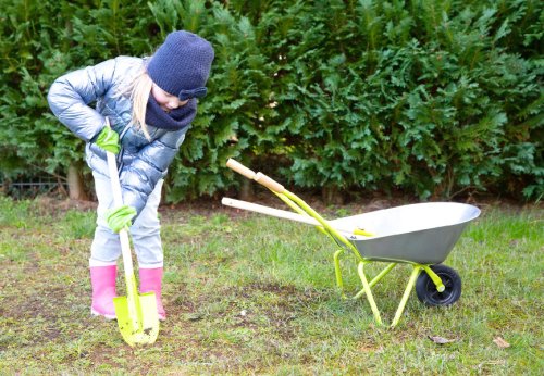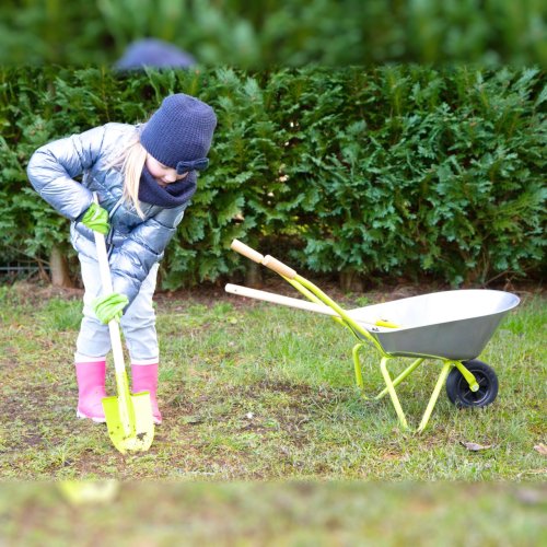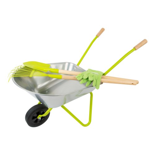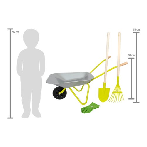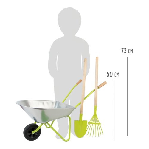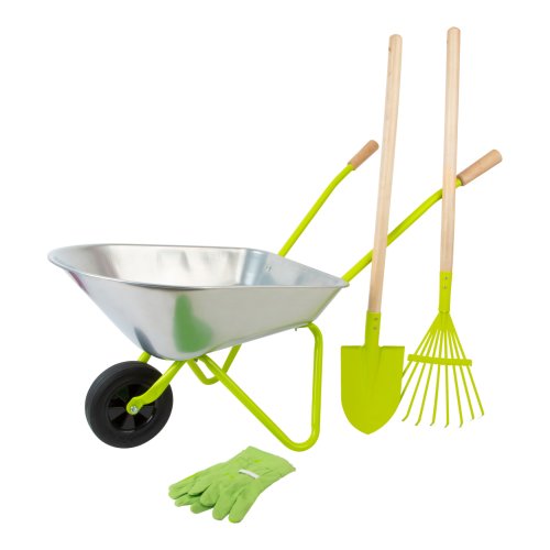 Perfektné vybavenie na prácu na záhrade! Koliesko má objem asi 10 litrov, s bavlnenými rukavicami, lopatou a grófkami potom deti môžu rodičom vypomôcť na záhrade. Hlavné vlastnosti: extra veľký objem drevené rukoväťolečko z nefarbeného kovurobustného gumového kolesa lopata a hrable, textilné rukavice zo 100% bavlny