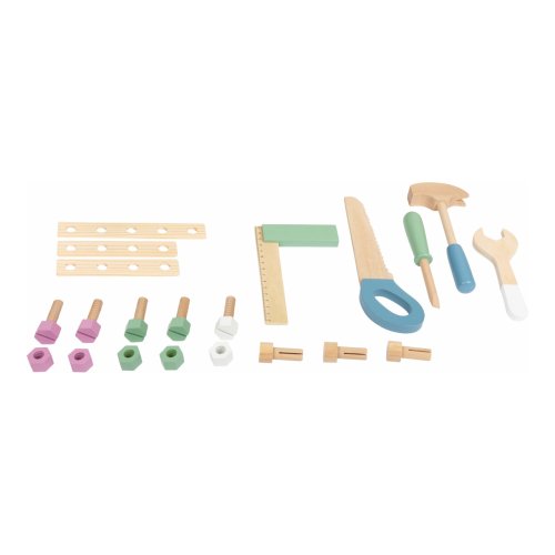 Video je iba ilustračné, zobrazuje príbuzný produkt. Jemné pastelové farby, pekné tvary, prírodný materiál - to je severský dizajn! S týmto dreveným ponkom sa môžu deti pri hre naučiť manuálne zručnosti. Obsahuje 21 doplnkov – 5 skrutiek, 5 matiek, 3 klince, 5 kusov náradia a 3 pláty s dierami na trénovanie jemnej motoriky. Deti môžu pomôcť pri zložení ponku a dokázať tak, že majú talent na manuálnu prácu. Náradie a doplnky môžu byť uložené do bezpečnej poličky. Ponk so škandinávskym dizajnom sa bude hodiť do každého domova. Je to skvelá hračka pre chlapcov aj dievčatá. Hlavné vlastnosti Rozmanitá hra na kompaktnom ponkuPekné farby s viditeľným drevom5 ks dreveného náradia a zverákDeti môžu pomôcť so zložením ponkuJednoduché uloženie náradia a doplnkov