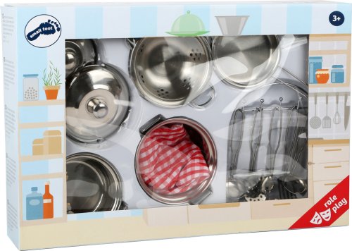 S touto sadou riadu skladajúci sa z rôznych hrncov a kuchynského náčinia sa každé malé dieťa môže stať špičkovým kuchárom, alebo kuchárkou. Súčasťou sady je chňapka a stojan s kuchynskými pomôckami. Takže chytte naberačku, pripravte sa a pustite sa do varenia. Táto sada je ideálny doplnok do detskej kuchyn ky. Hlavné vlastnosti: obsahuje 13 dielov podporuje kreativitu a nápaditosť rozvíja sociálne zručnosti zlepšuje obratnosť a motoriku