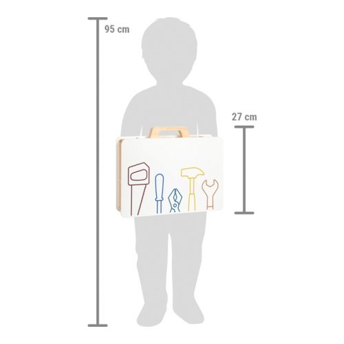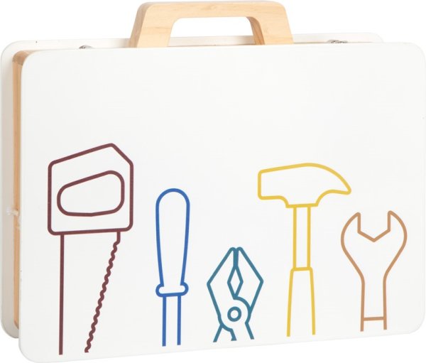Pozor všetci malí remeselníci aj remeselníčky! S týmto dreveným kufríkom sa deti môžu hrať na domácich majstrov. Realistické náradie a doplnky nabádajú ku kreatívnej hre a rozvoju fantázii. Pomocou jednotlivých stavebnicových dielikov môžu deti poskladať rozmanité konštrukcie (napr. závodné auto, vrtuľník, veterný mlyn alebo lietadlo) a rozvíjať tak svoju zručnosť. Pevný a odolný kufrík je vo vnútri vybavený gumovými popruhmi, vďaka ktorým sú jednotlivé kúsky náradia na svojom mieste prehľadne usporiadané. Tiež je kufrík opatrený kovovým zatváraním, ktoré udrží všetko bezpečne uložené a drevenou rukoväťou prispôsobenou rúčkam malých domácich majstrov. Sada obsahuje: kufrík, kladivo, kľúč, skrutkovač, kliešte, pílu, 11 skrutiek, 12 matíc, 2 obdĺžnikové perforované doštičky, 2 malé perforované doštičky, 4 stredne veľké perforované doštičky, 2 perforované doštičky v tvare kosoštvorca, 4 silné podložky, 2 ozubené kolesá. Hlavné vlastnosti: robustné a odolné prevedenie5 drevených nástrojov (kladivo, kľúč, skrutkovač, kliešte a píla)komplexné príslušenstvo vrátane skrutiek, matíc, ozubených kolies, sady podložiek a perforovaných dielov v rôznych tvaroch a veľkostiachgumové popruhy v kufríku držia náradie počas prepravy pohromaděkovové zaisťuje, že sa početné príslušenstvo nestratímnožstvo herných možností na cestách trénuje jemnú motoriku a sústredenie rozvíja fantáziu praktické a atraktívne balenie skvele sa hodí k ostatným produktom radu Workshop kompatibilný s produktmi radu Nordic, Miniwob