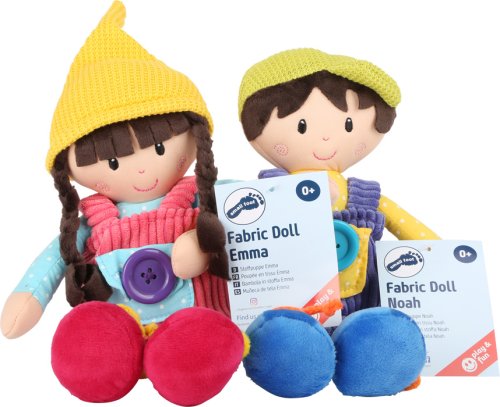 Hrať sa, alebo sa maznať? Oboje! Látkové bábiky Noe a Emma sprevádzajú najmenšie deti cez deň na ihrisku av noci v Ríši snov. Vďaka prepracovaným detailom, ako sú gombíky, opasky na suchý zips a šnúrky, hrkajúce a pískajúce nožičky, tieto bábiky podnecujú zvedavosť a trénujú motoriku. Tieto pestrofarebné mäkké bábiky sa nasťahujú priamo do detskej izby a rozžiaria náladu všetkým! Hlavné vlastnosti: mäkké látkové bábikychrastiace a pískajúce nožičky podnecujú zvedavosť a trénujú motoriku