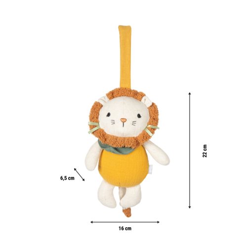 Jemné zvuky pre sladké sny! Táto s láskou navrhnutá plyšová hracia hračka v tvare levíčka nie je len upokojujúcim pomocníkom pri zaspávaní, ale aj štýlovým doplnkom do detskej izby. Vďaka príjemne mäkkému materiálu, kvalitnej mušelínovej látke a veselému dizajnu sa rýchlo stane obľúbeným spoločníkom bábätiek aj batoliat pri zaspávaní, maznaní i odpočinku. Či už ju zavesíte nad postieľku, na kočík alebo k prebaľovaciemu pultu, vďaka praktickému pútku je Levíček vždy po ruke. Po zatiahnutí za šnúrku začne hrať ukľudňujúce melódie „Twinkle, Twinkle, Little Star“. Látkový Levíček spája očarujúci vzhľad s praktickým využitím a pomáha navodiť harmonický denný aj nočný režim. Jemná melódia spolu s hebkým povrchom podporujú zmyslové vnímanie a pocit bezpečia, ktorý je v prvých mesiacoch života bábätka kľúčový. Vďaka svojej kompaktnej veľkosti sa skvele hodí do postieľky, kočíka aj na prebaľovací pult. Je to premyslený darček k narodeniu dieťaťa, ku krstu alebo ako milá pozornosť pre novopečených rodičov a zároveň krásny doplnok k ďalším produktom z dizajnového radu Little Lion.“ praktické pútko pre ľahké zavesenie na postieľku, kočík a pod. ideálne ako pomocník pri zaspávaní kompaktná veľkosť pre malé detské ručičky vhodná od narodenia