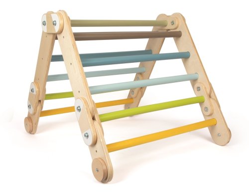 Lezecký trojuholník a rebriny 2 v 1 vynikajú svojou flexibilnou konštrukciou. Lezecký trojuholník voľne stojaci na zemi môže slúžiť ako zábavná preliezačka, zakrytá dekou ako skrýša či domček. Pokiaľ nemáte dostatok miesta, je možné ho rozložiť a pomocou 4 držiakov (ktoré sú súčasťou balenia) upevniť na stenu a vytvoriť tak rebriny s 11 tyčami vhodné aj pre staršie deti. Deti môžu rozvíjať svoje motorické zručnosti, rovnováhu a koordináciu pohybov. Rebriny je možné tiež využiť na pohybovú terapiu. Skvele doplní každú izbu alebo herný kútik a je možné ich kombinovať s ďalšími produktmi radu Adventure. Výrobok vyžaduje montáž, dodávané s detailným návodom na zostavenie. Hlavné vlastnosti: multifunkčné použitie pre mladšie aj staršie detiodolné drevené prevedenienosnosť 50 kg