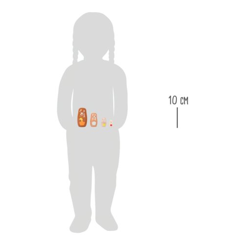 Štyri láskyplne maľované figúrky Matriošky v podobe medvedej rodiny. Menšie medvedíky sa podľa veľkosti postupne schovávajú do seba. Tieto bábiky sa ľahko uprostred otvárajú, čo je skvelá prax na koordináciu ruka-oko a jemné motorické zručnosti. Figúrky Matriošky vyžarujú svoje jedinečné kúzlo a sú roztomilé na pohľad - lákavý pútač s veľkým študijným potenciálom pre Vašu detskú izbu! Hlavné vlastnosti: 4 figúrky medvedej rodinkyrozvíja koordináciu ruka-oko a jemnej motorickej dovenosti