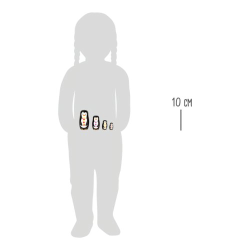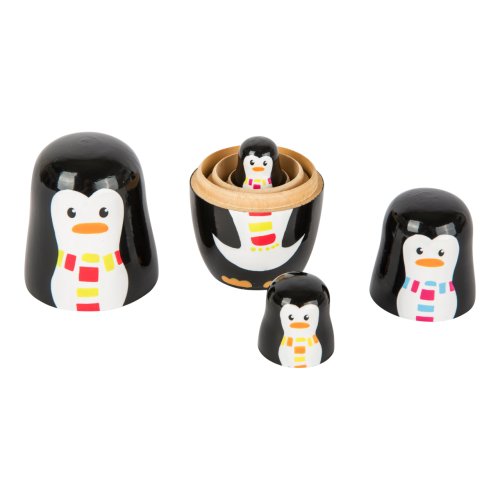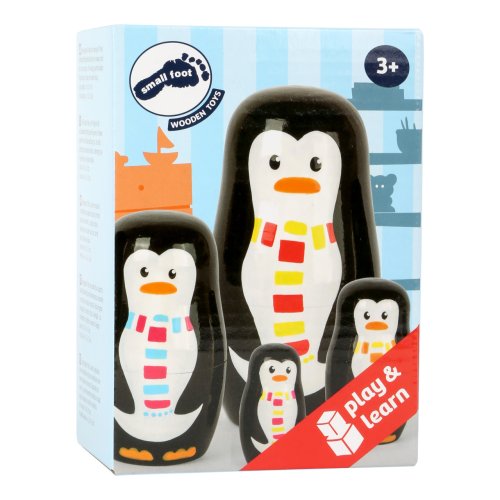 Štyri láskyplne maľované figúrky Matrioška v podobe tučniakovej rodiny. Menšie tučniaky sa podľa veľkosti postupne schovávajú do seba. Tieto bábiky sa ľahko uprostred otvárajú, čo je skvelá prax na koordináciu ruka-oko a jemné motorické zručnosti. Figúrky Matriošky vyžarujú svoje jedinečné kúzlo a sú roztomilé na pohľad - lákavý pútač s veľkým študijným potenciálom pre Vašu detskú izbu! Hlavné vlastnosti: 4 figúrky tučniakovej rodinky rozvíja koordináciu ruka-oko a jemnej motorickej dovenosti
