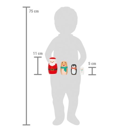 Vianočné matriošky prinášajú radosť deťom i dospelým. Láskyplne maľované drevené figúrky s motívmi Santy, soba, tučniaka a snehuliaka. Menšie figúrky sa podľa veľkosti postupne zasúvajú do väčších, čo podporuje hru, objavovanie a jemné motorické schopnosti. Každá matrioška vyžaruje kúzlo Vianoc a tvorí krásnu dekoráciu aj hračku zároveň. Skvelá aktivita pre rozvoj koordinácie ruka-oko a sústredenia. Hlavné vlastnosti: kombinuje hru a dekoráciu ideálnu pre detskú izbu aj vianočnú výzdobu rozvíja koordináciu ruka-oko a jemné motorické zručnosti vhodné od 3 rokov