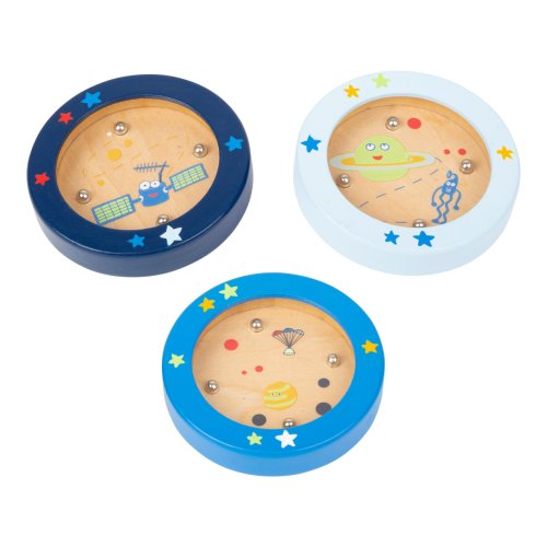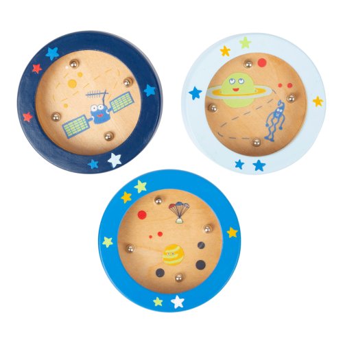 Posádka vesmírnej misie je pripravená na odlet! S touto miniatúrnou verziou populárnej drevené hry labyrintu s cool vesmírnym dizajnom môžu mladí aj starí astronauti precvičiť svoju sústredenosť a zručnosť. Vďaka zábavným ilustráciám bude manévrovanie dvakrát taká sranda. Kto dostane guličky do otvorov ako prvý? Hlavné vlastnosti: precvičuje sústredenosť a zručnosť