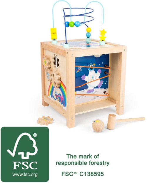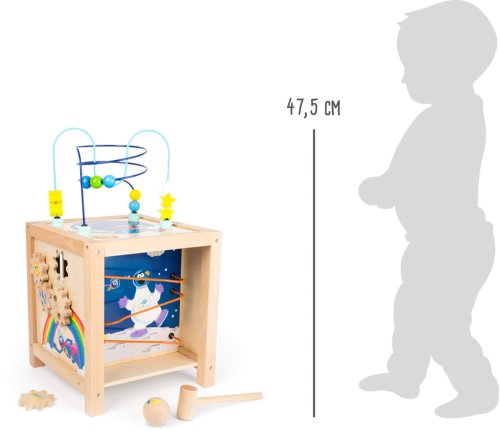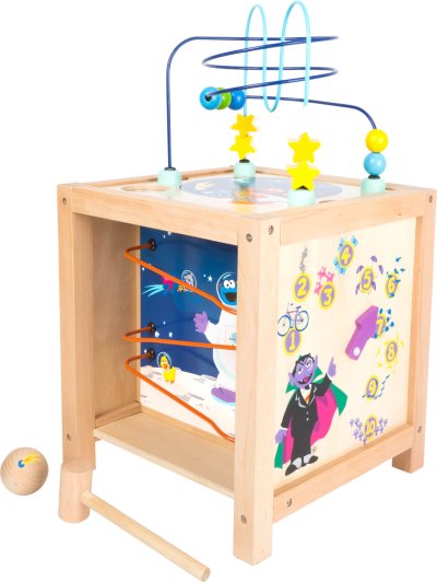 Päť strán, ktoré sú plné hier, nadšenia a zábavy. Táto rozmanitá motorická kocka je vyrobená zo stabilného 100% FSC® dreva a nájdete na nej známe postavy z rozprávky Sezame, otvor sa. Každá strana kocky ponúka špecifickú motorickú zábavu, ktorá zapojí všetky zmysly detí. Mnoho detí sa bojí, keď je čas ísť spať, s tým im pomôže Elmo. Korálková dráha v motíve nočnej oblohy deti upokojí. Na ďalšej strane potom ozubené kolesá, ktoré deťom vysvetlia, ako vzniká dúha. Je tu aj otvor na vloženie jedného ozubeného kolieska, ktoré tak vytvorí zvuk hromu! Jazdiace kolieska deťom porozpráva o dennej rutine Ernieho a Berta. Počas hry s kockou Sezame, otvor sa si deti hravo precvičia svoju motoriku. Zatĺkacia hra pošle drevené loptičky priamo bránou Sezamu! Gróf Drakula deti naučia základné počty. Perfektná hračka, ktorá deti zabaví na dlhé hodiny. Hlavné vlastnosti: 100% FSC® drevofarebná a prírodná drevomotorická hračkana každej strane iná hra Značka a certifikát FSC® (Forest Stewardship Council) zaručuje, že drevo, z ktorého bol produkt vyrobený, nebolo vyťažené nelegálne a pochádza z lesov obhospodarovaných šetrným či prírode blízkym spôsobom, v ktorom sú dodržiavané prísne environmentálne a sociálne požiadavky. Značka FSC® na výrobku znamená, že svojim nákupom pomáhate chrániť lesy a podporujete šetrné, zodpovedné či prírode blízke hospodárenie, vďaka ktorému sú naše lesy stabilnejšie, zdravšie, majú prirodzenú druhovú skladbu a lepšie odolávajú negatívnym následkom klimatických zmien.