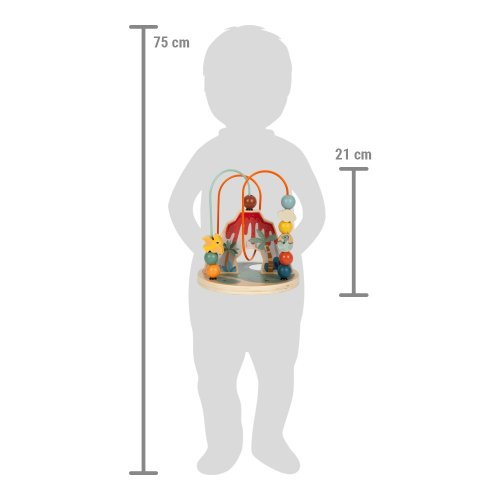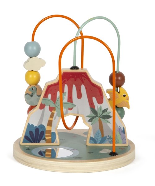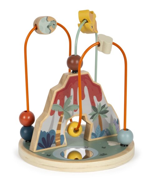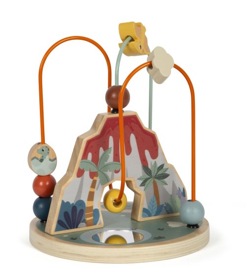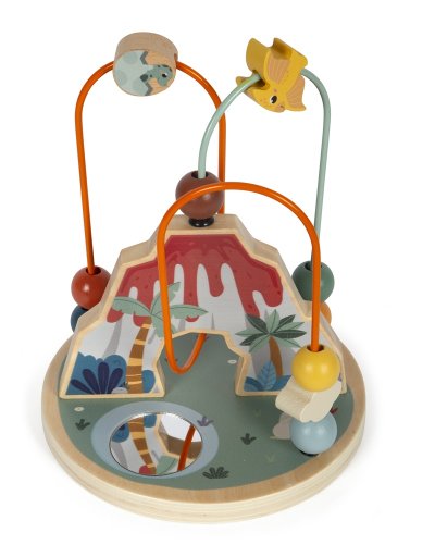Tento korálkový labyrint je nielen zábavný, ale je tiež prínosom pre rozvoj jemnej motoriky a koordinácie ruka-oko. Je vyrobený z robustného dreva a inšpirovaný dinosaurami a prostredím, v ktorom žili. Súčasťou labyrintu sú 2 motorické slučky, na jednej sú 4 a na druhej 6 korálikov rôznych farieb, tvarov a veľkostí. Na základni v tvare kruhu je umiestnené okrúhle zrkadlo, v ktorom je všetko vidieť z inej perspektívy. Vizuálnym vrcholom je sopka chrliaca lávu, ktorá funguje ako centrálny bod pre korálkové bludisko. S hračkami z produktového radu "Dino" sú témou fascinujúce prehistorické tvory, ktorí upútajú pozornosť ľudí všetkých vekových kategórií. Tieto drevené hračky podporujú rozvoj motorických zručností, inšpirujú detskú kreativitu a predstavivosť a povzbudzujú deti, aby sa dozvedeli viac o prírode a histórii týchto pravekých obrov. Hlavné vlastnosti: kvalitné farebné spracovanie s integrovaným zrkadlom rozvíja koordináciu ruka-okotrénuje jemnú motoriku Značka a certifikát FSC® (Forest Stewardship Council) zaručuje, že drevo, z ktorého bol produkt vyrobený, nebolo vyťažené nelegálne a pochádza z lesov obhospodarovaných šetrným či prírode blízkym spôsobom, v ktorom sú dodržiavané prísne environmentálne a sociálne požiadavky. Značka FSC® na výrobku znamená, že svojim nákupom pomáhate chrániť lesy a podporujete šetrné, zodpovedné či prírode blízke hospodárenie, vďaka ktorému sú naše lesy stabilnejšie, zdravšie, majú prirodzenú druhovú skladbu a lepšie odolávajú negatívnym následkom klimatických zmien.