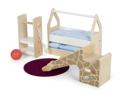 Taká krásna izbička! Iste sa bude páčiť aj Vašim deťom. Táto detská izbička je nielen krásnym doplnkom pre každý domček pre bábiky, ale tiež motivuje deti ku kreatívnej hre a rozvíja ich predstavivosť. Je vyrobený tak, aby čo najviac zodpovedal skutočnému nábytku. Súčasťou je posteľ v tvare domčeka s vysúvacím lôžkom pre hostí, posteľná bielizeň, polica s tyčou na zavesenie oblečenia, lopta, švihadlo a veľká hracia podložka. A to najlepšie nakoniec: šmykľavka Žirafa, ktorá bola vytvorená podľa skutočnej šmykľavky pre deti Žirafa Wildlife (číslo tovaru:.12424). Hlavné vlastnosti: moderný a elegantný nábytok do detskej izby šmykľavka Žirafa vytvorená podľa skutočnej detskej šmykľavky rozvíja fantáziu a motivuje ku kreatívnej hre
