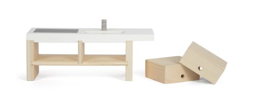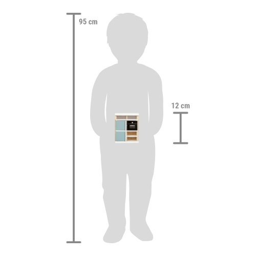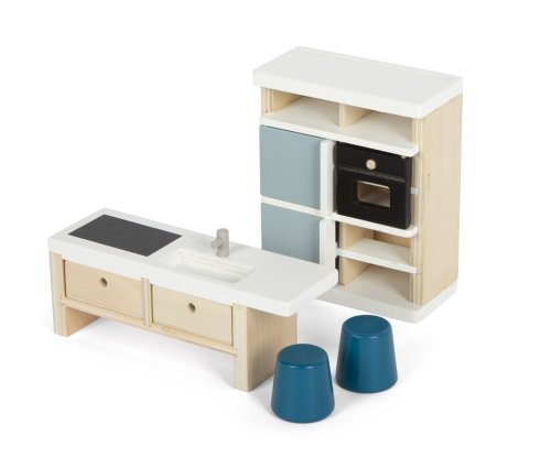 Táto detailne prepracovaná kuchyňa bude krásnym doplnkom každého domčeka pre bábiky. Skladá sa z vysokej kuchynskej skrine, samostatne stojaceho kuchynského ostrovčeka, 2 taburetov a stola s 2 lavicami so sedákmi, ktoré sa dajú zložiť. Súčasťou kuchynskej skrine je kombinovaná chladnička s mrazničkou a rúra s otváracími dvierkami. Kuchynský ostrovček má varnú dosku a drez a tiež dve vyberateľné zásuvky. Ako miesto na posedenie pri ostrovčeku slúžia dva taburety. Deti si môžu nakresliť obsah kuchynskej linky – napr. potraviny a vybavenie na kartón (3 ks kartónu sú súčasťou balenia) a ten použiť ako zadnú stenu linky. Hlavné vlastnosti: možnosť nakresliť si vlastný obsah kuchynskej linkydetailné spracovanie rozvíja fantáziu a kreatívnu hru