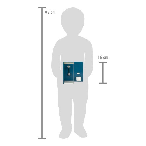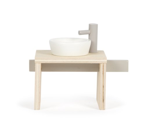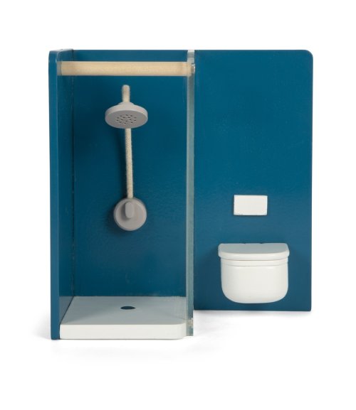Toto kúpeľňové vybavenie je nielen krásnym doplnkom pre každý domček pre bábiky, ale taktiež motivuje deti ku kreatívnej hre a rozvíja ich predstavivosť. Je vyrobené tak, aby čo najviac zodpovedalo skutočnej kúpeľni. Súčasťou je sprchovací kút s akrylátovou zástenou (výška sprchy je nastaviteľná), koberček, závesné WC a moderné umývadlo s malým ručným kom. Hlavné vlastnosti: moderný a elegantný nábytok do kúpeľne detailné spracovanie rozvíja fantáziu a motivuje ku kreatívnej hre