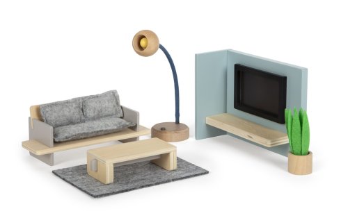 Chcete pozrieť na televíziu alebo len tak posedieť na pohovke? Táto obývacia izba je nielen krásnym doplnkom pre každý domček pre bábiky, ale taktiež motivuje deti ku kreatívnej hre a rozvíja ich predstavivosť. Je vyrobený tak, aby čo najviac zodpovedal skutočnému nábytku. Súčasťou je pohovka s 3 vankúšmi, ohybná vysoká stojaca lampa, príjemný koberček, konferenčný stolík, rastlina v kvetináči, panel s televíziou s plochou obrazovkou a policou a 2 obojstranné karty s obrázkom. Kartu je možné zasunúť do priestoru televízie ako obrazovku a deti si tak môžu zmeniť televízny program. Hlavné vlastnosti: moderný a elegantný nábytok do obývacej izby2 obojstranné vkladacie karty s obrázkom pre zmenu programu v televíziohybná vysoká stojaca lamparozvíja fantáziu a motivuje ku kreatívnej hre