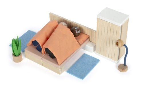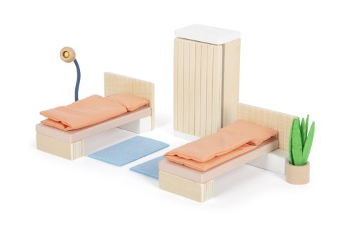 Táto spálňa je nielen krásnym doplnkom pre každý domček pre bábiky, ale taktiež motivuje deti ku kreatívnej hre a rozvíja ich predstavivosť. Je vyrobená tak, aby čo najviac zodpovedala skutočnému nábytku. Súčasťou je manželské dvojlôžko, ktoré je možné použiť ako dve samostatné postele, 2 vankúše a 2 periny, šatníková skriňa so zrkadlom, oblá lampa a 2 koberčeky. Hlavné vlastnosti: moderný a elegantný nábytok do spálnedetailné spracovanie rozvíja fantáziu a motivuje ku kreatívnej hre