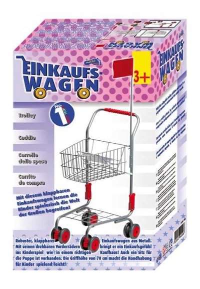 S týmto nákupným vozíkom bude pre deti nakupovanie veľmi zábavné. Vďaka striebornému dizajnu tohto klasického nákupného vozíka urobíte skvelý dojem na mladých nakupujúcich. Dodáva sa s červenými akcentmi na kolieskach, rukoväti, ráme, s červenou vlajkou a tiež skladacou sedačkou pre bábiky. Predné kolesá sa môžu otáčať o 360 stupňov, takže sa tento nákupný vozík ľahko ovláda. S týmto nákupným vozíkom môžu aj tie najmenšie deti napodobňovať svojich rodičov a ísť nakupovať rovnako ako dospelí. Košík ponúka dostatok priestoru na uloženie potravín a hračiek, je teda perfektný doplnok do hracích obchodov. Hlavné vlastnosti: o 360 stupňov otáčajúca sa predná kolavýška úchopu 60 cm ľahké ovládanie