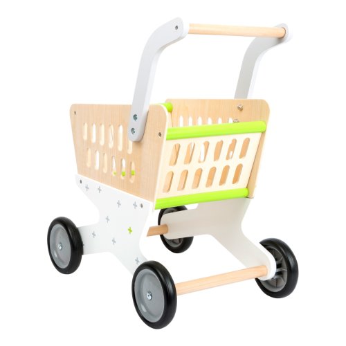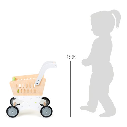 Na nákupy jedine s exkluzívnym a elegantným vozíkom! Doplňte ním obchod, či stánok a nechajte svoje deti rozohrať fantastické hry, prostredníctvom ktorých môžu rozvíjať komunikačné zručnosti. Je ľahko ovládateľný a ponúka dostatok priestoru, ktorý možno využiť aj na uloženie hračiek a vození plyšákov, alebo bábik. Jeho gumové kolieska zaisťujú tichý, kultivovaný chod na všetkých typoch povrchov. Pevné a odolné drevené prevedenie môže ponúknuť dlhú životnosť a svojou farebnosťou vkusne doplní každý detský pojíček. Výrobok vyžaduje montáž, dodávané s obrázkovým návodom na zostavenie. Hlavné vlastnosti: univerzálne využiteľný tichý, kultivovaný chodrobustný a odolné drevené prevedenie