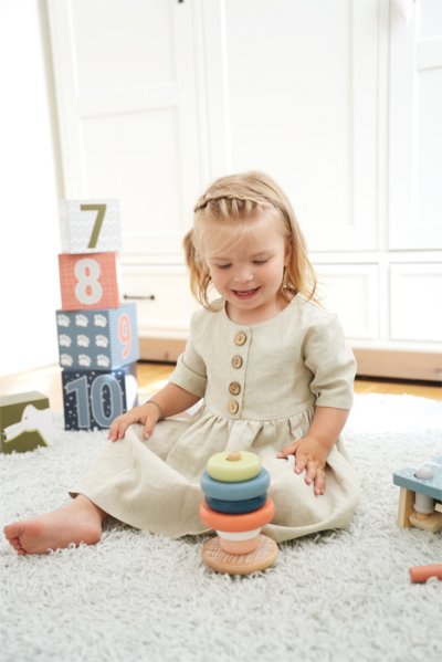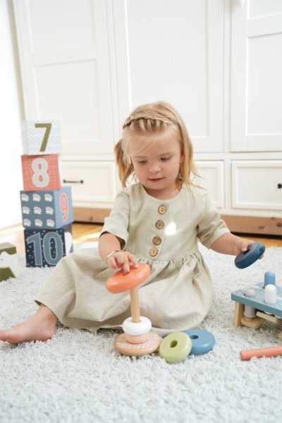 Zábava pri nasadzovaní s arktickou atmosférou. Táto nasadzovacia veža z certifikovaného dreva FSC® motivuje aj tie najmenšie deti, aby triedili šesť rôzne farebných krúžkov podľa veľkosti a skladali ich na seba. Táto aktivita trénuje motorické zručnosti, koordináciu ruka-oko a poskytuje pochopenie farieb a veľkostí. Zaoblená základňa umožňuje, aby sa nasadzovacia veža kývala tam a späť, čo zábavným spôsobom spochybňuje detskú zručnosť. Pohyblivý kolík zvyšuje bezpečnosť . Táto klasická motorická hračka vhodná pre deti vyrobená z robustného dreva je navrhnutá v moderných, ale jemných farbách a zaručuje dlhotrvajúcu zábavu pri hraní. Drevo hladké na dotyk dopraje deťom príjemný haptický zážitok. Malé deti sa nebudú vôbec nudiť! Hlavné vlastnosti: rozvíja jemnú motoriku dieťatka klasická hračka v modernom farebnom prevedení vyrobená z 100% FSC® dreva Značka a certifikát FSC® (Forest Stewardship Council) zaručuje, že drevo, z ktorého bol produkt vyrobený, nebolo vyťažené nelegálne a pochádza z lesov obhospodarovaných šetrným či prírode blízkym spôsobom, v ktorom sú dodržiavané prísne environmentálne a sociálne požiadavky. Značka FSC® na výrobku znamená, že svojim nákupom pomáhate chrániť lesy a podporujete šetrné, zodpovedné či prírode blízke hospodárenie, vďaka ktorému sú naše lesy stabilnejšie, zdravšie, majú prirodzenú druhovú skladbu a lepšie odolávajú negatívnym následkom klimatických zmien.