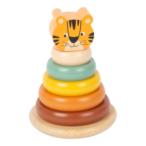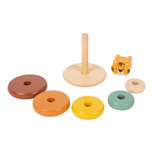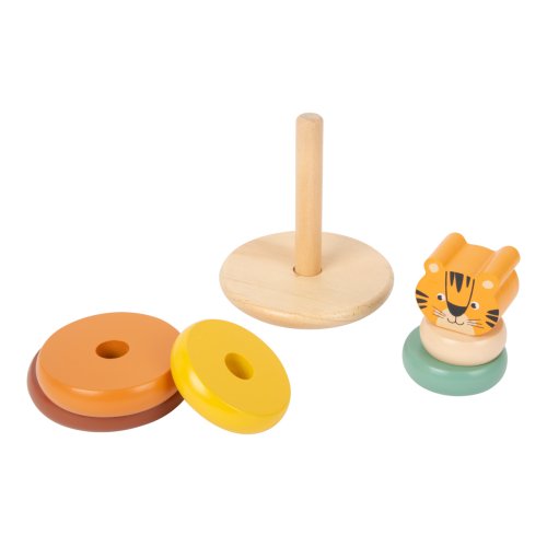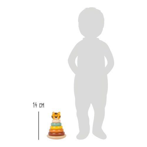 Nasadzovacia veža alebo rozkývaná pyramída? Oboje! Tento priateľský tiger sa ukáže v plnej kráse akonáhle deti poskladajú všetky drevené krúžky na seba v správnom poradí. Nasadzovacie zvieratko o 7 kusoch trénuje koordináciu ruka-oko, tiež porozumenie tvarom a veľkostiam. Rozkývaná veža, ktorá je vzdelávacou hračkou pre deti. Motorická hra v moderných farbách vyrobená z robustného dreva. Hlavné vlastnosti: pastelové farby základňa a 6 dielov
