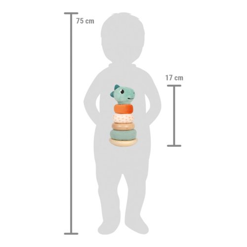 So stohovacou vežou v dizajne farebného dinosaura bude tréning motorických zručností zábavným a hravým zážitkom! Motorická hračka zaujme malých fanúšikov dinosaurov kombináciou plyšu a dreva. Trénuje koordináciu ruka-oko a jemnú motoriku, ale aj oživí interiér detskej izby. Zábavná kolísajúca sa veža so štyrmi farebnými krúžkami, bezpečnou pohyblivou centrálnou tyčou a usmievavou hlavou dinosaura pomôže deťom pri rozpoznávaní veľkostí a farieb. Základňa veže je zaoblená, 3 krúžky sú vyrobené z látok rôznych vzorov, farieb a textúr a 1 krúžok z dreva. Témou produktového radu "Dino" sú fascinujúce prehistorické tvory, ktorí upútajú pozornosť ľudí všetkých vekových kategórií. Tieto hračky podporujú rozvoj motorických zručností, inšpirujú detskú kreativitu a predstavivosť a povzbudzujú deti, aby sa dozvedeli viac o prírode a histórii týchto pravekých obrov. Hlavné vlastnosti: 3 mäkké látkové krúžky, 1 drevený krúžok, 1 dinosauria hlavapohyblivá centrálna tyčpodporuje rozpoznávanie farieb a veľkosťetrénuje motoriku a koordináciu ruka-okosúčasť produktovej rady Dino