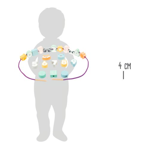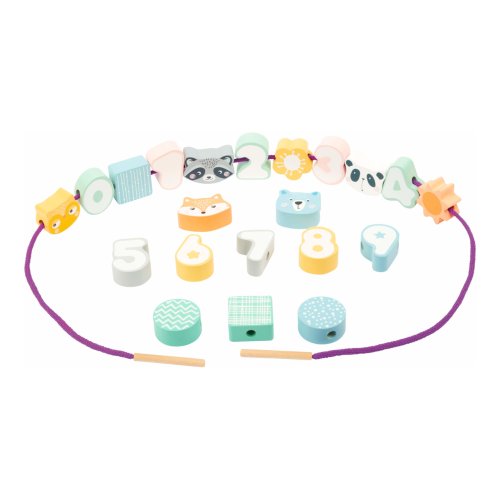 Zábavná hra so zvieratami a číslami v pastelových farbách! Cieľom tejto hry je navliecť čísla 0-9 v správnom poradí. Drevené zakončenie šnúrok deťom pomôže pri navliekaní a môžu vytvoriť rôzne kombinácie s číslami aj zvieratkami podľa vlastnej fantázie. Hlavné vlastnosti: rozvíja pozorovacie a analytické schopnostirozvíja jemnú motoriku a koordináciu ruka-okoučí základom počítania