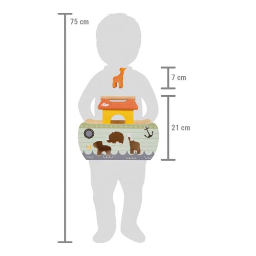 Vydajte sa na veľké dobrodružstvo Noemovej archy. Robustná drevená loď s madlom pre ľahké prenášanie a odnímateľným vekom. Táto loď v podobe Noemovej archy je fascinujúci herný svet, ktorý deťom prináša pestrú a dlhotrvajúcu zábavu. Hra má 15 drevených figúrok, ktoré sú ľahko uchopiteľné pre detské ruky. Obsahuje 6 párov zvieratiek, 2 ľudské figúrky a rebrík. Všetky figúrky zvierat perfektne zapadajú do otvorov v lodi a pomáhajú tak trénovať motorické schopnosti. Vďaka odnímateľnému veku s rukoväťou je možné loď ľahko otvoriť a figúrky zase vybrať. Precízne prepracovaný dizajn, krásne ilustrácie je v detskej izbe naozajstný pútač. Hra podporuje rozvoj motorických zručností, rozpoznávanie tvarov a zároveň podporuje detskú predstavivosť a povzbudzuje deti, aby znova a znova vytvárali vlastné príbehy a dobrodružstvá. Noemova archa sa skvele hodí k ostatným hračkám a hrám z radu "Safari". Hlavné vlastnosti: vkladacie dieliky sú ľahko uchopiteľné pre detské ruky design s krásnymi ilustráciami podporuje rozvoj motoriky, koordinácia ruka-oko a rozpoznávanie tvarov inšpiruje detskú fantáziu a povzbudzuje ich k rozprávaniu príbehov ideálne pre doplnenie s ďalšími motorickými hračkami z radu "Safari"