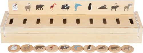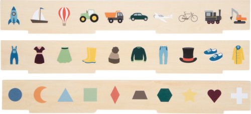 Tento drevený zásobník ponúka množstvo motívov na objavovanie s tromi obojstrannými vkladacími panelmi a 60 ks obrázkových žetónov na tému doprava, zvieratá, čísla, tvary, oblečenie, ovocie a zelenina. Pri triedení a vkladaní žetónu do krabičky si deti trénujú jemnú motoriku, rozpoznávanie farieb a tvarov zábavným spôsobom. Motívy je možné tiež využiť na učenie slov a zdokonaľovanie slovnej zásoby zábavnou formou. Desať samostatných priehradok vo vnútri dreveného zásobníka a dve západky na gumičku zaisťujú bezpečné uloženie obsahu. Praktická učebná hračka vhodná aj keď ste na cestách. Hlavné vlastnosti: tri obojstranné obrazové panelymožnosť uložiť do uzatvárateľného zásobníkaučebná hračka vhodná aj na cestyrozpoznávania farieb a tvarov zábavným spôsobomrozšírenia slovnej zásoby