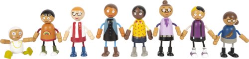 Táto veľká rodina drevených ohýbacích bábik je vhodná do každého domčeka pre bábiky. Skladá sa z 8 rodinných príslušníkov rôzneho pohlavia a veku. Ohýbacie bábiky majú hlavu a telo vyrobenú z masívneho dreva, zatiaľ čo ich ruky a nohy sú textilné, ohybné. Dva páry rodičov, tri deti a bábätko v nosidle, ktoré je možné pripevniť k ostatným ohýbacím bábikám, ponúkajú množstvo rôznych herných možností. Aktívne hranie rolí učia deti zábavnou formou, aký rozmanitý môže byť životný štýl. Hranie rolí podporuje rozvoj identifikácie, komunikácie, predstavivosti a sociálnych i emocionálnych zručností. Ohýbacie bábiky sú svojou veľkosťou ľahko uchopiteľné pre malé detské ručičky. Ideálny doplnok k mestskej vile s domčekom pre bábiky (11802) kompaktné mestské vile (12277). Hlavné vlastnosti: 8-členná flexibilná rodinka bábik podporuje predstavivosť, kreativitu a sociálne zručnostirealistická zábava vďaka ohybným pažiam a nohámflexibilná, robustná s bohatými detailmi
