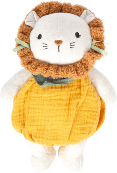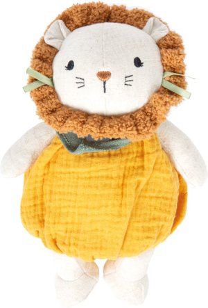 Stvorené na maznanie! Tento roztomilý plyšový Levíček je ideálnym prvým kamarátom pre bábätká a batoľatá. Hebký povrch, mäkko polstrované telo a deťom prispôsobený design poskytujú pocit bezpečia a pohodlia a zároveň podporujú hravé objavovanie sveta. Textúrovaná mušelínová látka ponúka deťom zaujímavý povrch, ktorý láka na dotýkanie, uchopovanie a prirodzene podporuje rozvoj zmyslov aj jemnej motoriky. Či už v postieľke, kočíku alebo na cestách, leví plyšák je vždy nablízku. Vďaka svojmu mäkkému, polstrovanému prevedeniu a príjemnému materiálu sa plyšový Levíček rýchlo stane obľúbeným spoločníkom v prvých mesiacoch života dieťaťa. Kombinuje upokojujúce maznanie s možnosťami zmyslového vnímania a svojou kompaktnou veľkosťou skvele padne do detských rúčok. Táto mäkká hračka poskytuje pocit blízkosti, istoty a stáva sa známym prvkom každodenných rituálov. Ideálne pre hranie aj ako premyslený darček pre najmenších. Hlavné vlastnosti: mäkká plyšová hračka pre bábätká s motívom lvaideálna veľkosť pre malé detské ručičkyrozvíja jemnú motoriku, predstavivosť a kreatívne hranievyrobené z mušelínu a látky s príjemnou textúroupodporuje uchopenie, dotýkanie a prvé zmyslové zážitkyvhodné od narodenia