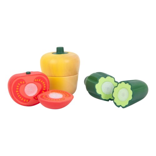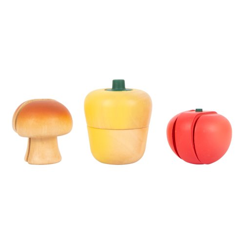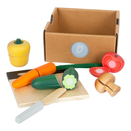 S touto sadou krájacej zeleniny z robustného dreva sa môžu deti hrať na šéfkuchára! Skladá sa z bežnej zeleniny, ktorú deti bez problémov spoznajú. V balení doštička na krájanie, drevený nôž, znovupoužiteľný obal, ktorý je možné použiť na úschovu hračky. Na jednu stranu dosky je možné písať kriedou, zapíšte si nákupný zoznam alebo recept. Je naozaj dôležité naučiť sa správnu techniku krájania, s touto hračkou to pôjde ako po masle. Paprika, šampiňón, paradajka, uhorka a mrkva – v tejto sade je všetko! Prirodzene vyzerajúca a detailná zelenina drží dohromady pomocou suchého zipsu. Vďaka udržateľnému obalu sa deti naučia niečo nové o ekológii. Krájaciu doštičku možno vďaka oka zavesiť . Hlavné vlastnosti: krájacia zelenina z robustného drevaprírodný vzhľad a vytlačené detailyobsiahla sada s doskou, nožom, paprikou, šampiňónom, paradajkou, uhorkou a mrkvízabalené v znovupoužiteľnom obale, deti sa pri hre naučia niečo nové o ekologiina jednu stranu doštičky