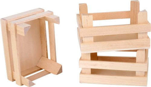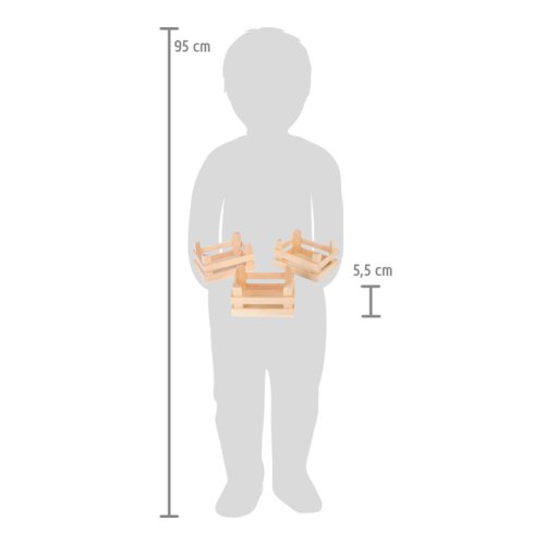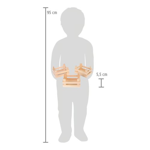 Pevné a odolné drevené debničky sú všestranne využiteľné. Je možné nimi doplniť niektorý zo širokej ponuky stánkov k hrám na predavača, rovnako tak ale môžu poslúžiť na triedenie a udržiavanie poriadku, či už v detskej izbe, alebo na záhrade. Vďaka prírodnej úprave ich môžete natrieť a nalakovať podľa svojej fantázie a potrieb . Hlavné vlastnosti: sada 3 ks debničiek pevné a odolné prevedenie možnosť vlastnej úpravy