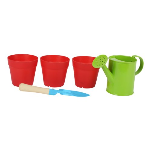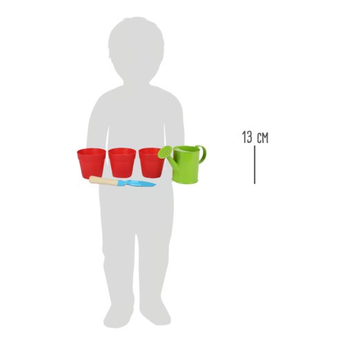 Zahradnite ako dospeláci s touto sadou kanvičky, lopatky a znovupoužiteľných kvetináčov. Jednoducho naplňte kvetináče hlinou, zasaďte semienka a počkajte, čo sa bude diať. Mladí záhradkári sa naučia ako pracovať s prírodou a ako si ju vážiť. Lopatka je vyrobená z masívneho dreva a kovu a pre deti je ľahko uchopiteľná. Kvetináče majú zospodu diery na odtekanie prebytočnej vody. Aké rastliny zasadíte? Hlavné vlastnosti: ideálna veľkosť pre detirozvíja motoriku a vzťah k prírodevyrobené z kovu, drevené násadabalenie obsahuje: 3 kvetináče, 1 kanvička, 1 lopatka